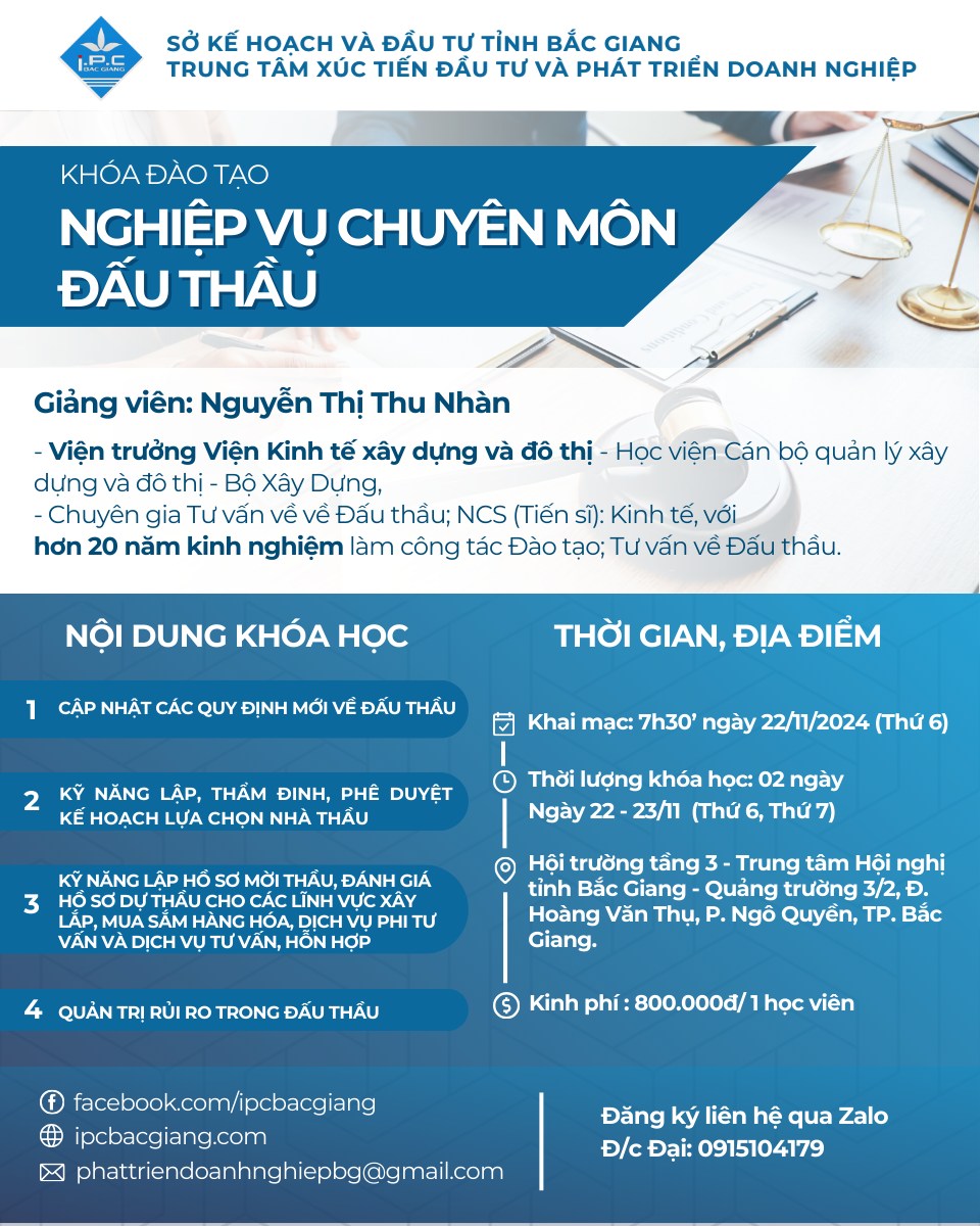 Mời tham dự: Khóa đào tạo chuyên sâu “Nghiệp vụ chuyên môn về đấu thầu”